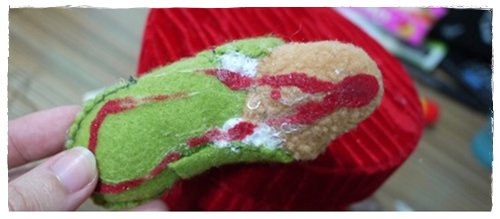 (就連麋鹿頭裡面的棉花也是乾淨的唷,因為我昨天也把麋鹿頭打開塞啾啾器啦)
