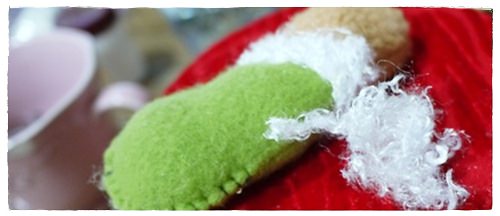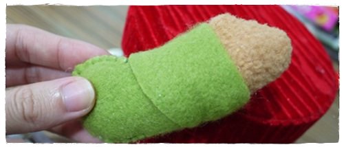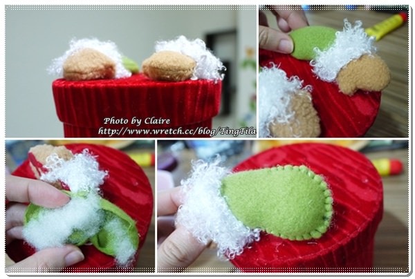 用綠色的布面來包覆白色毛毛範圍