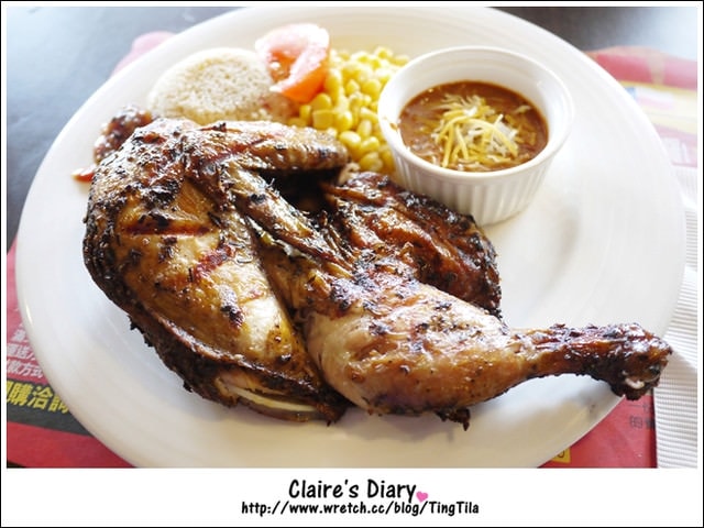 烤機是半隻雞的份量唷~會附上莎拉、麵包、配菜